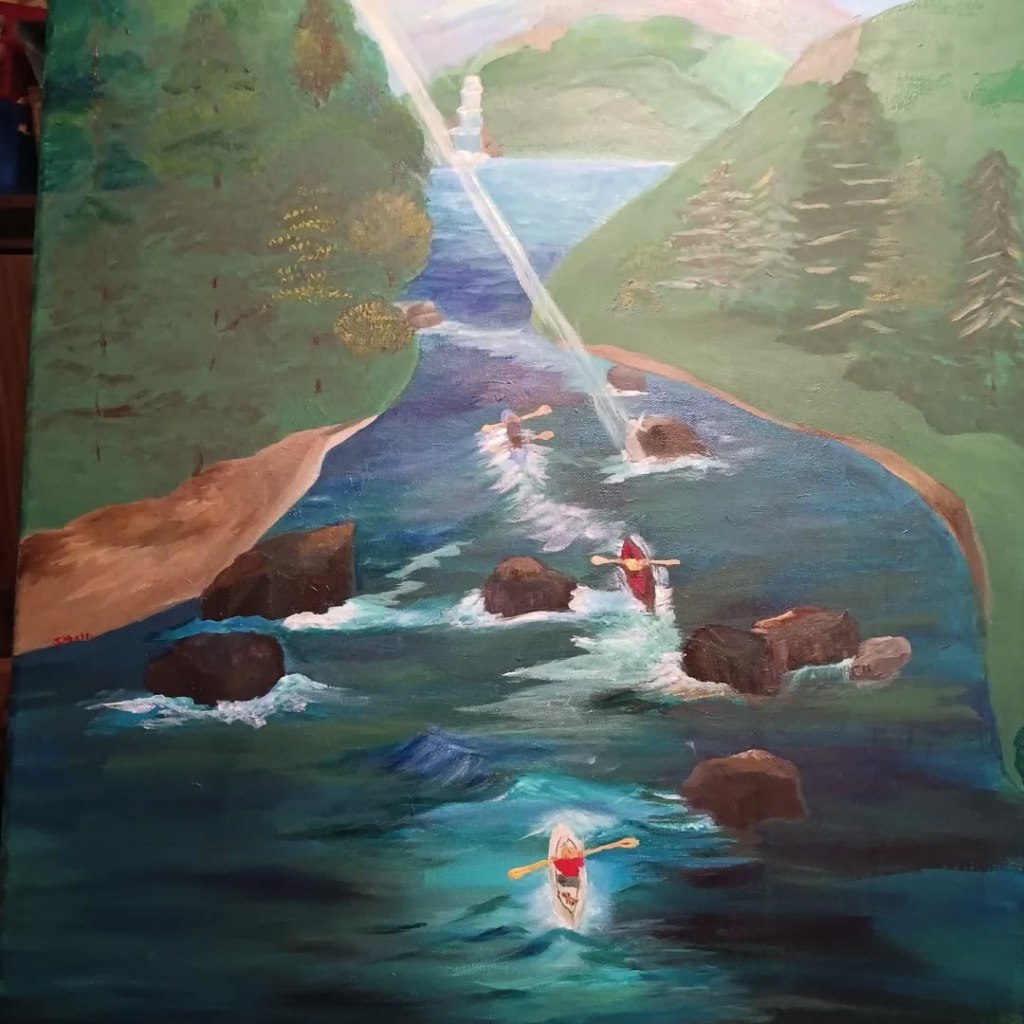 This painting was actually done as what I refer to as a waste canvas, you know when you use leftover paint to create another painting. It had actually been sitting in my barn for over a year. I pulled it out tonight with the intention of painting over it.