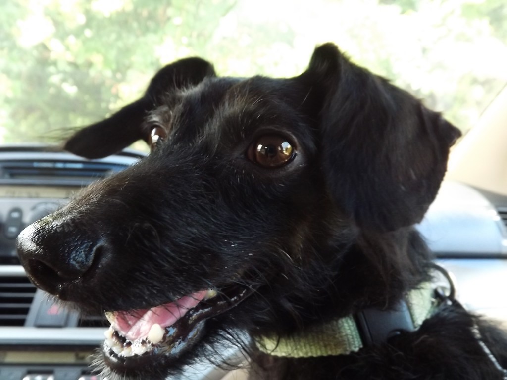 We looked and look through the many large cages that housed a lot of large barking dogs. At the very end of the long hallway was this little forlorn guy with long ears and a very sad face. He was dark as the winter’s night with on the white’s of his eyes smiling at me.