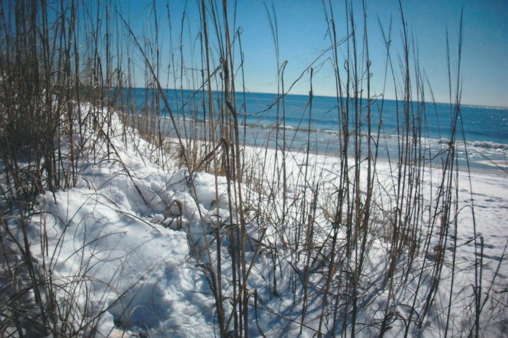 In the second picture, I didn’t just want to get the beach but to capture the whole experience. Even the sea oats seem to make a statement. Make the uninteresting interesting. It was important not to just capture the beach but the snow on the beach. Not just the dunes, but capture the holes and footprints on the dunes. Don’t settle for less than perfect pictures. If you are not there yet, keep practicing you will be there soon.