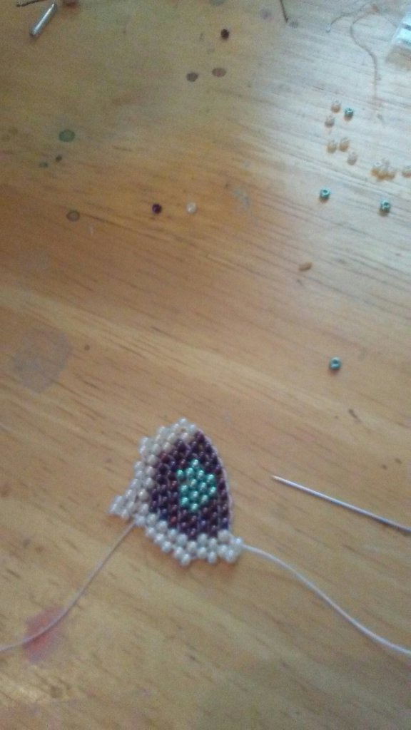This afternoon I started a Native American style fringe earring. These are worked with very small seed beads added to a beading needed. You first start by making a ring and then working back through half of them to start the brick pattern. These take quite a while to complete but worth the effort. There are patterns on pinterest and on the Fire Mountain Gem website.