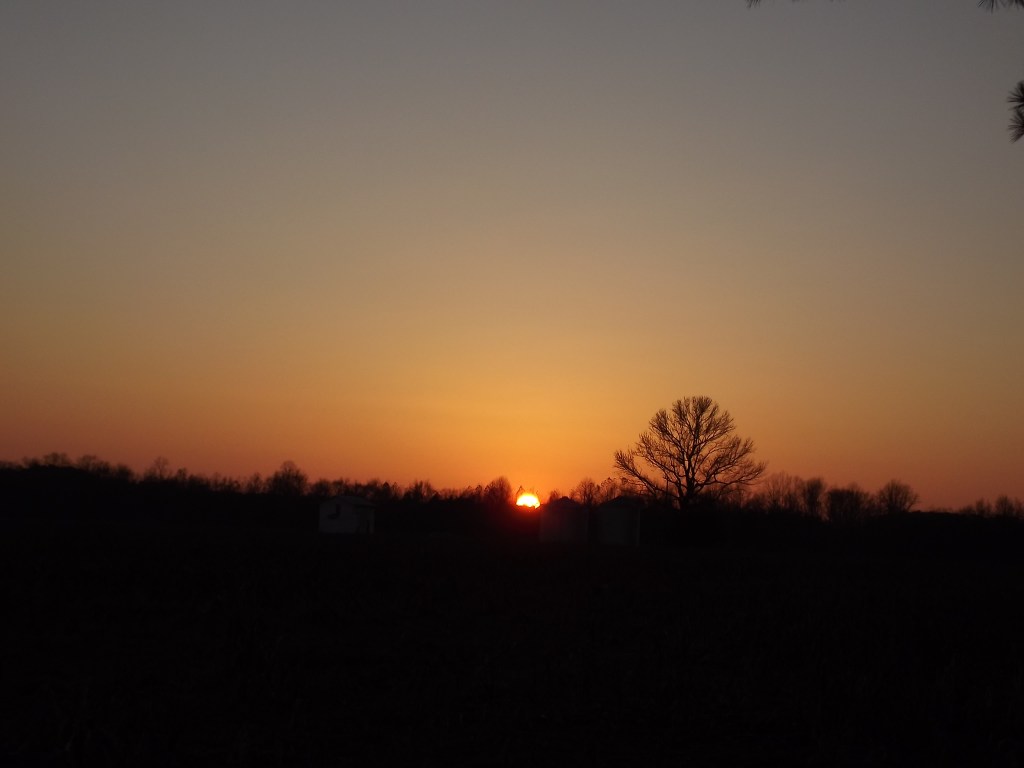 There was no planet alignment seen until about 5:38 EST. It was underwhelming to say the least. You may still be able to see it for a few more minutes depending on where you are. While in the field it suddenly appeared when it had not been there even minutes prior. If you looked at the center of the horizon and then halfway to your left and a quarter of the sky up, you could clearly see a planet. I was undecided as to whether or not that was it until my husband said, “see there’s another one beside it”. Sure enough when I looked again I could see a shadow of a ring on the right hand side of it.