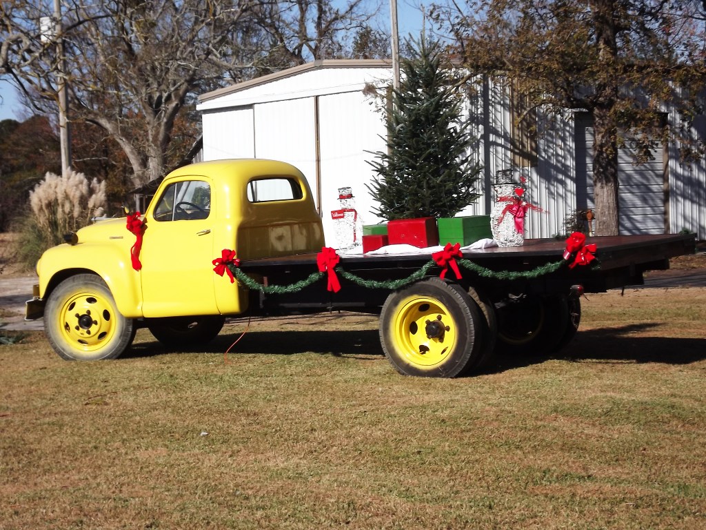 I knew my cousin was up to something when he pulled the big old yellow farm truck out in front of his house. Here is Christmas his style: