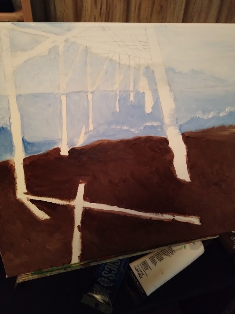 Vanessa Horabuena is currently one of my favorite artists. Her paintings are faith based. Recently I have been pondering how I could include my faith in my paintings. Ironically, the shadow of the beams in the foreground form a cross.