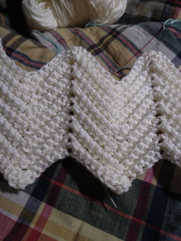 I never really liked that this pattern had two sets of holes. The original pattern has a hole at the top of the arch and one seven stitches away in the valley.