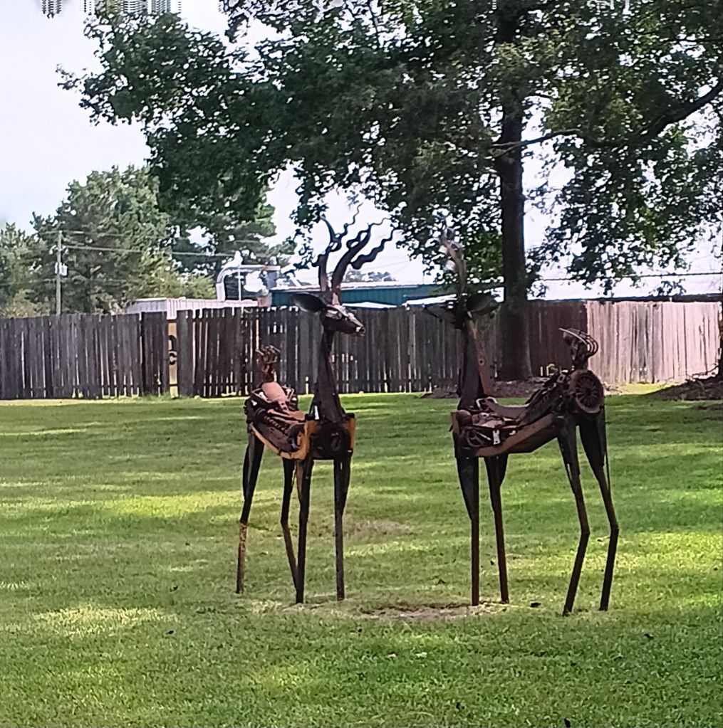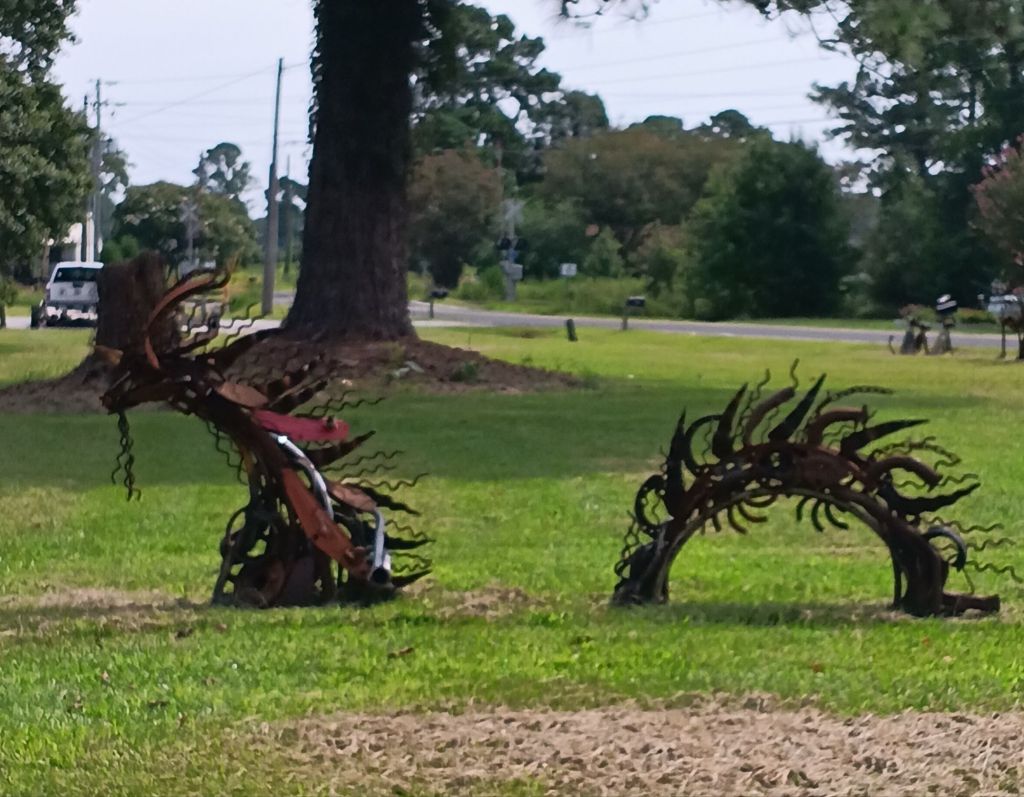 Art comes in many forms. While these pieces may just be structures of rust to some, I prefer to see them as creative sculptures. Some person took their time to collect these materials and craft together these images of creatures we love. They tried in their own way to share their love of creation.