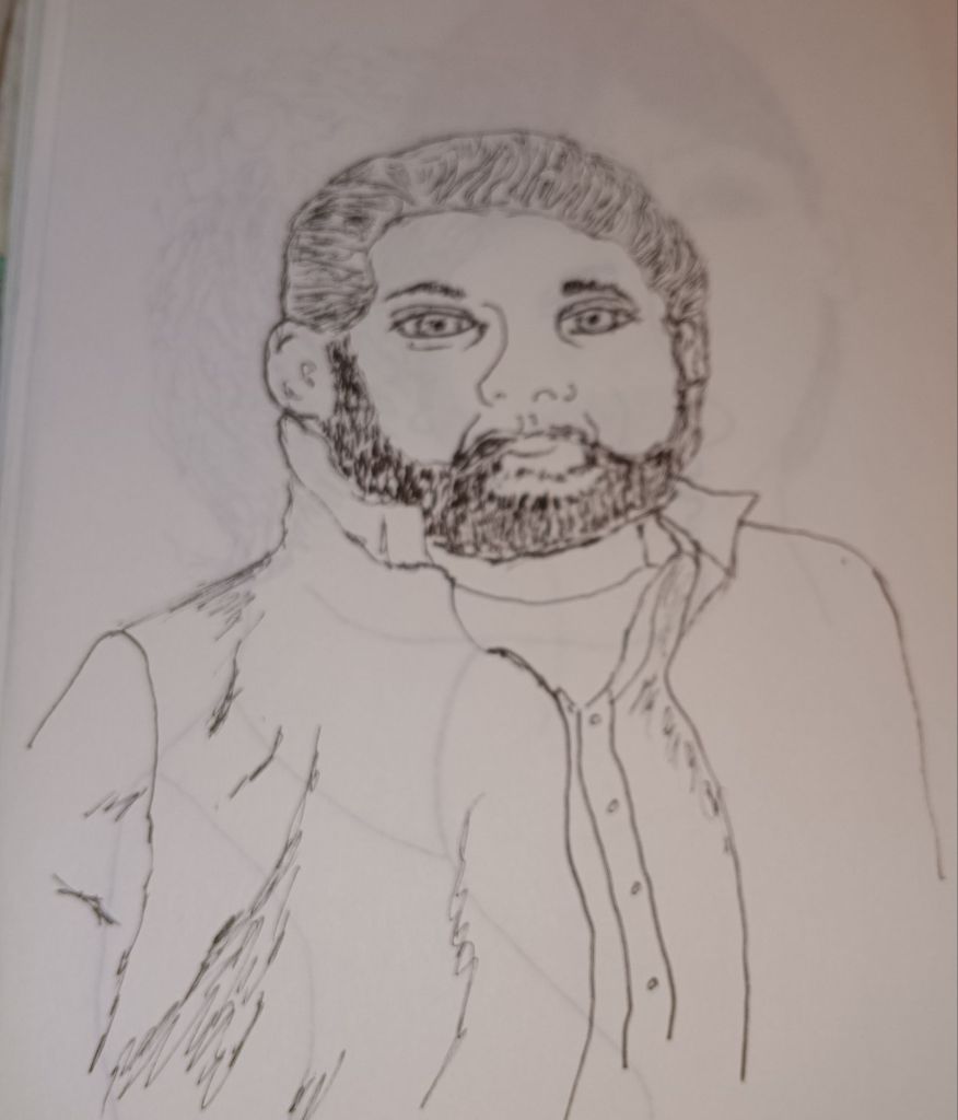 While he might not be perfect and is lacking color he does at least in some form seem to have some resemblance to my source. As I make each line I try to give him character something that will make you question “who is this guy”?